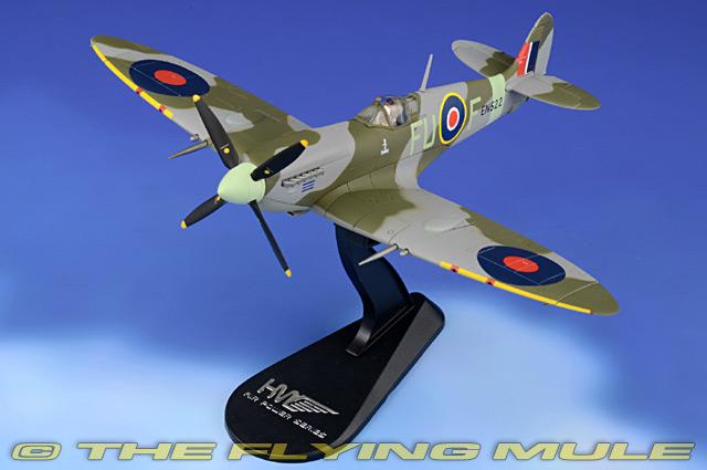Hobby Master's 1:48 scale Spitfire Mk I is cleverly designed to provide the collector with a reasonably-priced, top quality product with just the right number of features. This beautiful model features a canopy that slides open or is removable, providing a clear view of the pad-printed gauges and correctly-rendered control stick with loop stick grip. The all-metal propeller spins freely and the engine exhaust stack has been separately applied. The near-solid metal wing has hinged metal landing gear with integrated metal gear doors, and the wing root fairing is integrated in the wing's casting, which creates a flawless transition between the fuselage and the near-razor thin trailing edge.