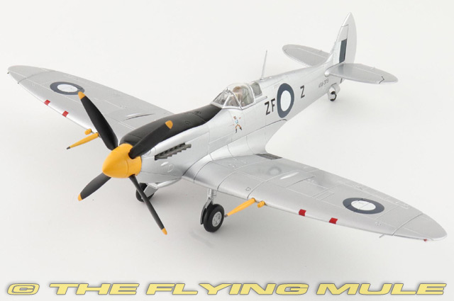 Hobby Master's 1:48 scale Spitfire Mk I is cleverly designed to provide the collector with a reasonably-priced, top quality product with just the right number of features. This beautiful model features a canopy that slides open or is removable, providing a clear view of the pad-printed gauges and correctly-rendered control stick with loop stick grip. The all-metal propeller spins freely and the engine exhaust stack has been separately applied. The near-solid metal wing has hinged metal landing gear with integrated metal gear doors, and the wing root fairing is integrated in the wing's casting, which creates a flawless transition between the fuselage and the near-razor thin trailing edge.