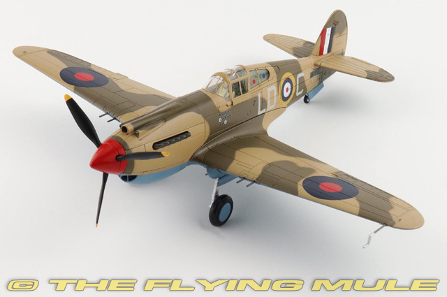 In 1942, Clive Caldwell, Australia's top WWII fighter ace, flew the Curtiss P-40 Tomahawk in North Africa with the RAF's No. 112 Squadron. Known for its shark-mouth nose art, the Tomahawk was rugged and reliable, though outclassed by German Bf 109s. Caldwell skillfully exploited its strengths - excellent diving speed and durability - earning several kills during this period. His aggressive tactics and gunnery skill made him a respected and feared pilot. Despite early aircraft limitations, Caldwell adapted quickly to desert warfare, becoming a key figure in the air campaign over Libya and Egypt, boosting morale and proving the value of Allied airpower. Designed to meet a USAAC requirement for a pursuit aircraft, the P-40 Warhawk was first flown on October 14th, 1938. This aircraft was tough, virtually trouble-free and saw continual improvements to arms, armor and engines. The P-40 served in numerous combat areas; often outclassed by its adversaries in speed, maneuverability and rate of climb, it earned a reputation for extreme ruggedness. Its strong construction, heavy firepower, and ability to dive enabled it to compete with enemy fighters, and it was a formidable ground-attack aircraft. P-40s were also flown by the famed Flying Tigers against the Japanese in China. © Copyright 2003-2025 The Flying Mule, Inc. The Hobby Master "1:48 Air Power Series" range presents detailed, ready-made diecast models of military aircraft. Hobby Master "1:48 Air Power Series" diecast airplanes feature: - Diecast metal construction with some plastic components.