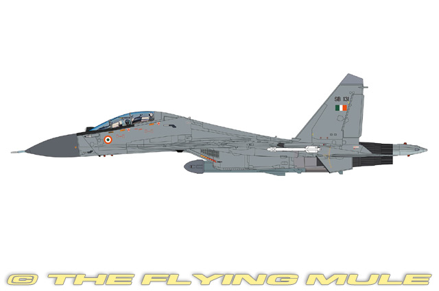 The Indian Air Force deployed Su-30MKI fighters to Exercise Iniochos 2025 in Greece, demonstrating advanced multirole capability and interoperability with NATO and allied air forces. The Su-30MKI is capable of carrying the BrahMos supersonic cruise missile, though such weapons are typically not carried during international exercises. During Iniochos, Indian crews focused on air combat, strike coordination, and complex mission scenarios alongside partner nations. The deployment highlighted the Su-30MKI's long range, maneuverability, and sensor capability. Participation strengthened operational cooperation and showcased India's ability to integrate advanced platforms into multinational air operations environments. Designed as two-seat multi-role variant of the Su-27, the Su-30 was first flown (as the Su-27PU) on December 31, 1989. The design grew from a Soviet need for a long-range interceptor based on the Su-27 with the addition of a second pilot and retractable in-flight refuelling probe. Similar to the F-15E Strike Eagle, the Su-30 is still a highly capable Air Superiority Fighter while an advanced avionics suite make it formidable in the Air-to-Ground Strike Fighter role. The Su-30 has spawned numerous sub-variants, including several designed for the export market. © Copyright 2003-2026 The Flying Mule, Inc. The Hobby Master "1:72 Air Power Series" range presents detailed, ready-made diecast models of military aircraft. Hobby Master "1:72 Air Power Series" diecast airplanes feature: - Diecast metal construction with some plastic components.