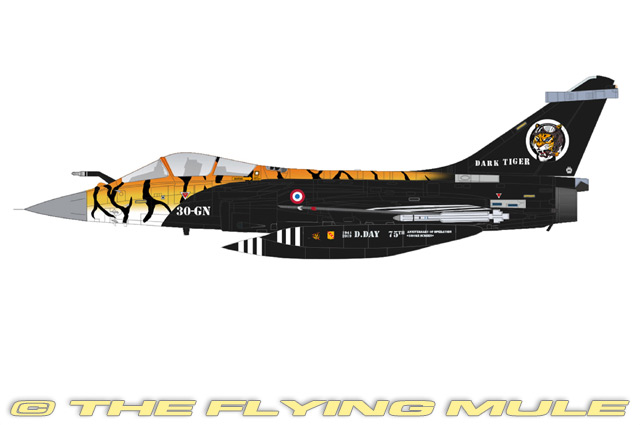 The NATO Association of Tiger Squadrons was esablished in 1961 to promote solidarity between NATO air forces. Each year, it holds a "Tiger Meet" to give member nations an opportunity to train together in simulated battle over the skies of Europe. As well as being opportunities for NATO air forces to share ideas and experiences, the meets are also public relations exercises and participating squadrons often decorate their aircraft with elaborate tiger-striped paint schemes. At the NATO Tiger Meet 2019, held at Base Aerienne 118 Mont-de-Marsan in southwestern France, the French Air Force's Escadron de Chasse 3/30 unveiled a special livery on their Dassault Rafale C aircraft, dubbed "Dark Tiger." This striking paint scheme featured a predominantly black fuselage adorned with tiger motifs, including a cartoon-style tiger face on the tail, celebrating the 75th anniversary of the "Smoke Screen" operation during the Normandy landings on June 6, 1944 . Designed as a result of the ACX (Avion de Combat Experimentale) program prior to France's withdrawl from the EFA project, the Rafale was first flown on July 4th, 1986. The Rafale is multi-role fighter for the Franch Air Force and Navy, capable of handling missions from reconnaissance to air supremacy to nuclear deterrence. The Rafale built on Dassault's expertise with delta-winged fighter design, adding a forward canard to improve maneuverability and reduce approach speeds for carrier operations. The Rafale's advanced avionics and and limited stealth capabilities are expected to secure it as the primary combat aircraft for the French Air Force and Navy until at least 2040. © Copyright 2003-2025 The Flying Mule, Inc. The Hobby Master "1:72 Air Power Series" range presents detailed, ready-made diecast models of military aircraft. Hobby Master "1:72 Air Power Series" diecast airplanes feature: - Diecast metal construction with some plastic components.