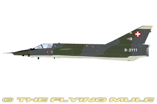The Swiss Air Force operated the Mirage IIIRS as a dedicated reconnaissance variant of the Mirage III from the late 1960s until 2003. Equipped with advanced cameras and sensors in the nose, the IIIRS conducted high speed photo reconnaissance missions in support of national defense. The aircraft could operate in all weather conditions and from Switzerland's hardened and dispersed air bases. Pilots flew low level and high speed profiles to gather intelligence across the country's mountainous terrain. The Mirage IIIRS remained a key surveillance asset for decades before retirement, marking the end of Swiss Mirage reconnaissance operations. Designed to meet a French government specification for a lightweight, all-weather interceptor, the Dassault Mirage III was first flown on November 17, 1956. This supersonic aircraft has a tailless delta wing configuration and is capable of high speeds (a Mirage IIIA was the first European aircraft to exceed Mach 2 in level flight). It has a provision for a SEPR liquid-fuel rocket engine, which provides additional burst thrust. In production for over a decade, the Mirage III is considered one of Europe's most successful military aircraft designs, serving 20 different nations, some of whom still fly it today. © Copyright 2003-2026 The Flying Mule, Inc. The Hobby Master "1:72 Air Power Series" range presents detailed, ready-made diecast models of military aircraft. Hobby Master "1:72 Air Power Series" diecast airplanes feature: - Diecast metal construction with some plastic components.