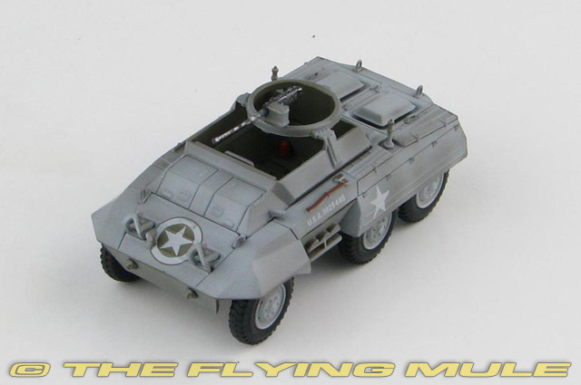 The M20 Armored Utility Car was also known as an M20 Scout Car. It was a converted M8 without the revolving turret and meant there was an open top but it did provide a certain amount of protection for the crew from small arms fire or shrapnel. The M20 had a top speed of 90 km/h and was quite agile which made it well suited for forward reconnaissance work. It is estimated that along with heavy Sherman and Stuart losses hundreds of M8s and M20s were lost in the Ardennes. Designed to fill a need for a fast tank destroyer to replace the M6 37mm Gun Motor Carriage, the M8 Greyhound entered production in March 1943. Used by US and British troops, the M8 had a 37mm M6 gun and a Browning machine gun mounted in an open-topped turret. It was fast and reliable but had poor off-road performance, which meant it was severely limited in muddy and snowy conditions such as those in Northern Europe. When facing German armored vehicles the M8 was formidable but vulnerable-its guns could easily penetrate German armor, but its own thin armor wasn't enough to stop German 20mm autocannons. © Copyright 2003-2025 The Flying Mule, Inc. The Hobby Master "1:72 Ground Power Series" range presents detailed, ready-made diecast models of military vehicles. Hobby Master "1:72 Ground Power Series" diecast vehicles feature: - Diecast metal construction with some plastic components.
