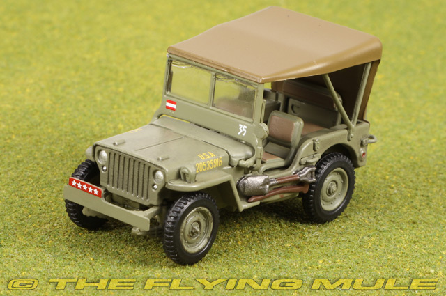 In October 1945, General Douglas MacArthur fulfilled his famous promise to return to the Philippines by leading the Allied invasion of Leyte during World War II. As the Supreme Commander of Allied Forces in the Southwest Pacific, MacArthur waded ashore on Leyte on October 20, 1945, marking the beginning of the liberation of the Philippines from Japanese occupation. The Leyte landings, part of the larger Battle of Leyte, were a pivotal moment in the Pacific Theater. MacArthur's leadership and the success of the campaign helped to turn the tide against Japan, eventually leading to the end of the war in the Pacific. Designed to meet a US Department of War requirement for a light, cross-country reconnaissance vehicle, the Willys MB Army Jeep was manufactured between 1941 and 1945. The Willys Jeep was the original version of what would later become one of the most iconic vehicles in American history, evolving into a popular civilian vehicle that is still being produced today. The Willys Jeep was a compact, four-wheel drive vehicle that rapidly became one of the most prolific vehicles of WWII. More than 640,000 standardized versions were produced, with 8,690 other versions built over a period of four years. © Copyright 2003-2025 The Flying Mule, Inc. The Hobby Master "1:72 Ground Power Series" range presents detailed, ready-made diecast models of military vehicles. Hobby Master "1:72 Ground Power Series" diecast vehicles feature: - Diecast metal construction with some plastic components.