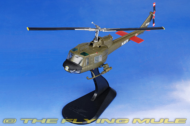 HA(L)-3 “Seawolves” Helicopter Attack Squadron (Light) three was formed in 1966 to support Naval Special Warfare operations and Mobile Riverine Forces in Vietnam. The unit was first formed using 8 volunteer pilots and was formally commissioned in April 1967. The Seawolves were used for SAR, recon, MEDEVAC and insertion and extraction of Navy Seal teams. The Seawolves were decommissioned in January 1972 but not before flying 120,000 combat sorties with 44 being killed and 200 wounded. Designed to meet a US Army requirement for a medical evacuation (MEDEVAC) and general utility helicopter, the UH-1 Huey was first flown on October 20, 1956. Nicknamed "Huey" because of its original "HU-1" designation, this aircraft became famous during the Vietnam War, where 7,000 of them served in a variety of roles, from MEDEVAC and search and rescue to troop transport, air assault and ground attack. As a troop transporter, the Huey revolutionized warfare, giving the Army the ability to strategically position troops in various locations that were otherwise difficult to reach in the heavy jungle environment. © Copyright 2003-2025 The Flying Mule, Inc. The Hobby Master "1:72 Air Power Series" range presents detailed, ready-made diecast models of military aircraft. Hobby Master "1:72 Air Power Series" diecast airplanes feature: - Diecast metal construction with some plastic components.
