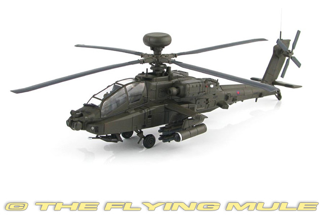 In 2013 an airshow was held in Cosford, England where along with numerous aircraft, a static and aerial display of the AH1 Apache was carried out by ZJ171 from the 662 Squadron. The crew of ZJ171 was Staff Sergeant Jamie Boakes and Captain Harry Wales (Prince Harry) as he is affectionately referred to. ZJ171 is WAH #6, the first WAH-64 Apache delivered to British Army at GKN Westland Helicopters at its Yeovil facility. In 2007/2008 Captain Wales spent 10 months on the front lines in Afghanistan. Designed to meet a US Army requirement for an advanced attack helicopter, the AH-64 was first flown on September 30th, 1975. Called "The Apache," this formidable helicopter replaced the AH-1 Cobra as the principal attack helicopter for the US Army. At the time of its introduction, the Apache was revolutionary, with an innovative helmet mounted display and improved crash survivability. It is heavily armored and has been called a "Flying Tank," not only because of its defenses but also because of its ability to inspire fear on the battlefield. The Apache has become a symbol of Army airpower, serving in both Gulf Wars and in Afghanistan. © Copyright 2003-2026 The Flying Mule, Inc. The Hobby Master "1:72 Air Power Series" range presents detailed, ready-made diecast models of military aircraft. Hobby Master "1:72 Air Power Series" diecast airplanes feature: - Diecast metal construction with some plastic components.