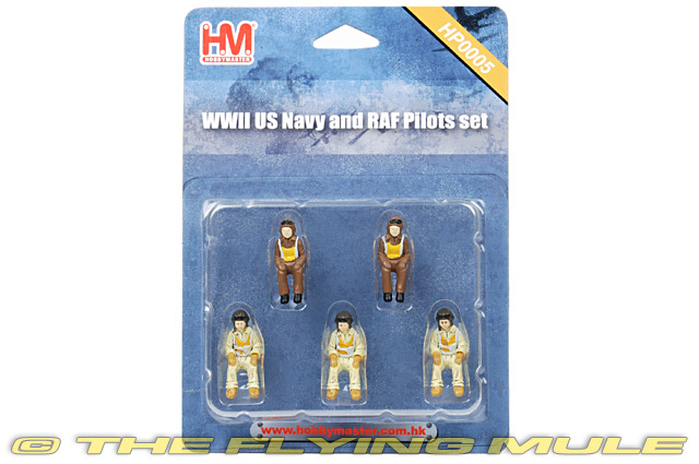 Hand-painted flexible pilot figures designed for Hobby Master 1:48 aircraft. Set consists of three US Navy and two RAF pilots.
