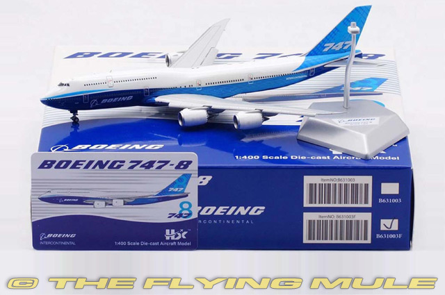 | Boeing 747-8I | | 7.5" | | 6.75" | Designed as a large capacity airliner and freight hauler, the 747 was first flown on February 9th, 1969. © Copyright 2003-2025 The Flying Mule, Inc. The HX Models "1:400" range presents higly-detailed, ready-made diecast models of civilian aircraft in 1:400 scale. HX Models diecast airplanes feature: - Diecast metal construction, including wings and tail surfaces.