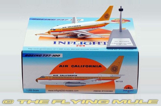 | | Code: IF-IF731OC0925 Price: $108.95 Status: In Stock Quantity in Cart: none | Inflight IF731OC0925 Boeing 737-100 Diecast Model Air California, N471GB, w/Stand | |