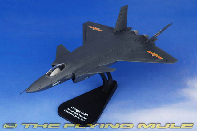 | Chengdu J-20 Black Eagle | | 7.5" | | 5" | Designed as a fifth generation stealth fighter, comparable to the F-22, the J-20 was first flown on January 11th, 2011. The J-20 is radically more advanced than any previous chinese design, using state-of-the-art stealth technology, supercruise capabaility and a modern fly-by-wire control system. Speculation exists that some of this technology may have been reverse-engineered from an F-117 that was downed over Serbia in 1999. Much larger than the F-22, the J-20 is most likely intended for a long-range intercept role with the ability to destroy enemy AWACS and Electronic Warfare aircraft from afar. It is anticipated that the aircraft may reach operational status by 2018. © Copyright 2003-2026 The Flying Mule, Inc. The Italeri "Dreamwings Collection" range presents affordable, ready-made diecast models of military aircraft. To help keep the price down, these items arrive in low-cost, discardable blister type packaging. Italeri "Dreamwings Collection" diecast airplanes feature: - Diecast metal and plastic construction.