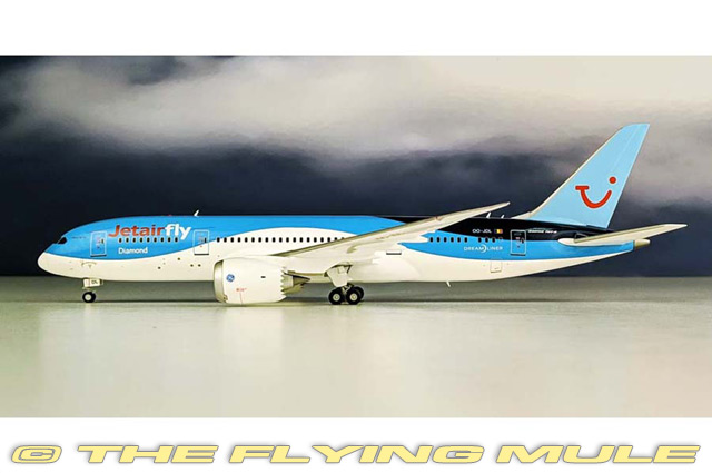 | Boeing 787-8 Dreamliner | | 11.25" | | 11.75" | Designed as a mid-sized, wide-body airliner and constructed out of mostly composite material, the 787 was first flown on December 15th, 2009. © Copyright 2003-2025 The Flying Mule, Inc. The JC Wings "1:200" range presents higly-detailed, ready-made diecast models of civilian aircraft in 1:200 scale. JC Wings diecast airplanes feature: - Diecast metal construction, including wings and tail surfaces.