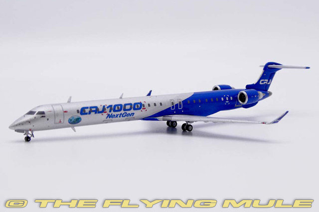 | Bombardier CRJ1000ER | | 3.75" | | 2.5" | Designed as a much larger version of the successful CRJ100 series of Bombardier regional jets, the CRJ700 was first flown on May 27th, 1999. © Copyright 2003-2025 The Flying Mule, Inc. The JC Wings "1:400" range presents higly-detailed, ready-made diecast models of civilian aircraft in 1:400 scale. JC Wings diecast airplanes feature: - Diecast metal construction, including wings and tail surfaces.