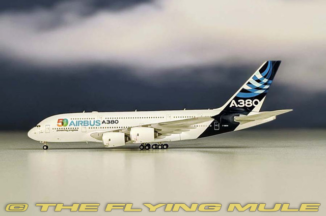 | Airbus A380 | | 7.25" | | 7.75" | Designed as the world's largest airliner, the double-decker A380 was first flown on April 27th, 2005. © Copyright 2003-2026 The Flying Mule, Inc. The JC Wings "1:400" range presents higly-detailed, ready-made diecast models of civilian aircraft in 1:400 scale. JC Wings diecast airplanes feature: - Diecast metal construction, including wings and tail surfaces.
