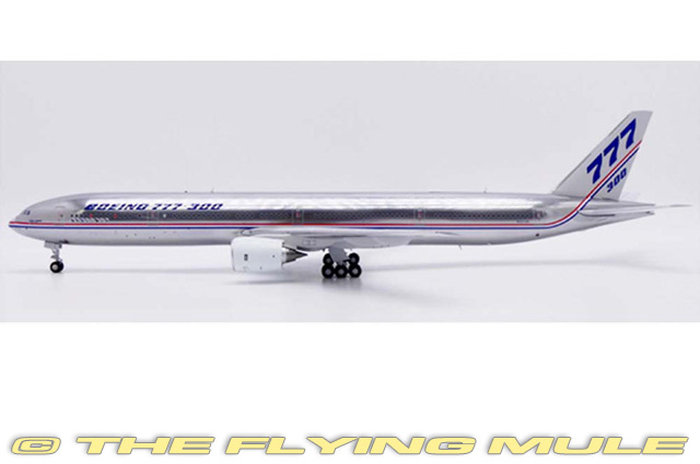 | Boeing 777-300 | | 14.5" | | 12" | Designed as a wide-bodied, twin-engined airliner to compete with the Airbus A330/A340 and the McDonnell Douglas MD-11, the 777 was first flown on June 12th, 1994. A pair of the world's largest diameter turbofan engines power the aircraft which currently holds the record for world's largest twin-engined airliner. The 777 was Boeing's first fly-by-wire airliner, featuring complete glass cockpit displays and flight envelope protection. Standard varients have a range of 4,200 nautical miles while Extended Range (ER) variants can fly for 6,600 nautical miles and the Longer Range (LR) variant is the world's longest range airliner capable of flying 7,800 nautical miles. © Copyright 2003-2025 The Flying Mule, Inc. The JC Wings "1:200" range presents higly-detailed, ready-made diecast models of civilian aircraft in 1:200 scale. JC Wings diecast airplanes feature: - Diecast metal construction, including wings and tail surfaces.