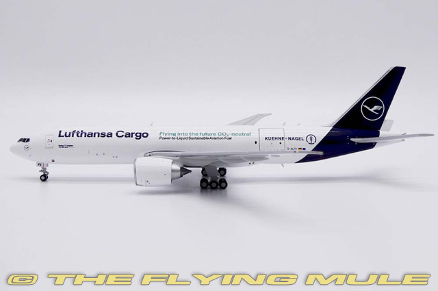| Boeing 777-200F | | 6.25" | | 6" | Designed as a wide-bodied, twin-engined airliner to compete with the Airbus A330/A340 and the McDonnell Douglas MD-11, the 777 was first flown on June 12th, 1994. A pair of the world's largest diameter turbofan engines power the aircraft which currently holds the record for world's largest twin-engined airliner. The 777 was Boeing's first fly-by-wire airliner, featuring complete glass cockpit displays and flight envelope protection. Standard varients have a range of 4,200 nautical miles while Extended Range (ER) variants can fly for 6,600 nautical miles and the Longer Range (LR) variant is the world's longest range airliner capable of flying 7,800 nautical miles. © Copyright 2003-2025 The Flying Mule, Inc. The JC Wings "1:400" range presents higly-detailed, ready-made diecast models of civilian aircraft in 1:400 scale. JC Wings diecast airplanes feature: - Diecast metal construction, including wings and tail surfaces.