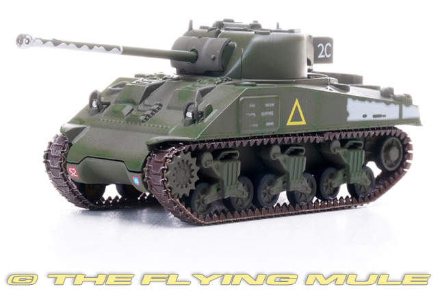 The Sherman tank saw widespread Allied use in WWII, but its original 75mm gun was inadequate for taking on heavily armored German tanks like the Panther and Tiger. With remarkable foresight the British decided to fit a 17pdr antitank gun, able to penetrate a Tiger I's frontal armor at 1000m, to the Sherman. Thus the Firefly was born, with approximately 2200 eventually produced. Most Fireflies were adapted from the M4A4 and were known as the Firefly VC ("C" denoting the 17pdr gun), while a smaller number were converted from the older M4 and were called Firefly IC. The pilot model of the M4 was completed in September 1941, and the Sherman became the most widely produced tank of the war. The M4 Sherman defeated heavier tanks with superior numbers, and by using outflanking tactics to strike thinner enemy flank armor. Shermans also achieved success with progressively upgunned models and by working with tank destroyers. The Sherman tank--named by the British--was fast, maneuverable, mechanically reliable, easy to manufacture, and effective in its infantry support role. It served with the US Army and Marines during World War II, and the US transferred large numbers to the United Kingdom and allied forces of many countries. © Copyright 2003-2025 The Flying Mule, Inc. The Legion Model range presents affordable, ready-made diecast models of military vehicles in 1:72 scale. Legion Models diecast vehicles feature: - Diecast metal and plastic construction.