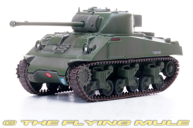 The Sherman tank saw widespread Allied use in WWII, but its original 75mm gun was inadequate for taking on heavily armored German tanks like the Panther and Tiger. With remarkable foresight the British decided to fit a 17pdr antitank gun, able to penetrate a Tiger I's frontal armor at 1000m, to the Sherman. Thus the Firefly was born, with approximately 2200 eventually produced. Most Fireflies were adapted from the M4A4 and were known as the Firefly VC ("C" denoting the 17pdr gun), while a smaller number were converted from the older M4 and were called Firefly IC. The pilot model of the M4 was completed in September 1941, and the Sherman became the most widely produced tank of the war. The M4 Sherman defeated heavier tanks with superior numbers, and by using outflanking tactics to strike thinner enemy flank armor. Shermans also achieved success with progressively upgunned models and by working with tank destroyers. The Sherman tank--named by the British--was fast, maneuverable, mechanically reliable, easy to manufacture, and effective in its infantry support role. It served with the US Army and Marines during World War II, and the US transferred large numbers to the United Kingdom and allied forces of many countries. © Copyright 2003-2025 The Flying Mule, Inc. The Legion Model range presents affordable, ready-made diecast models of military vehicles in 1:72 scale. Legion Models diecast vehicles feature: - Diecast metal and plastic construction.