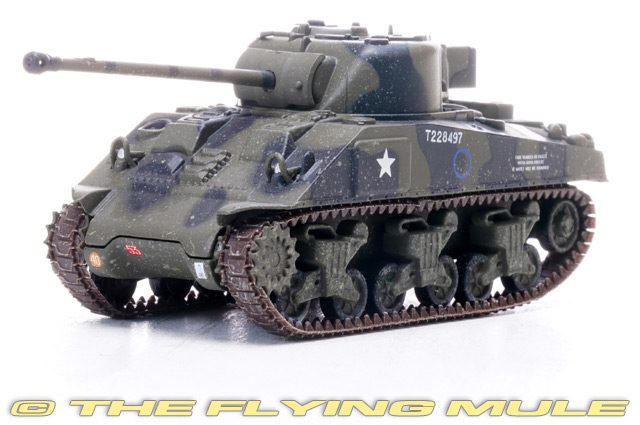 The Sherman tank saw widespread Allied use in WWII, but its original 75mm gun was inadequate for taking on heavily armored German tanks like the Panther and Tiger. With remarkable foresight the British decided to fit a 17pdr antitank gun, able to penetrate a Tiger I's frontal armor at 1000m, to the Sherman. Thus the Firefly was born, with approximately 2200 eventually produced. Most Fireflies were adapted from the M4A4 and were known as the Firefly VC ("C" denoting the 17pdr gun), while a smaller number were converted from the older M4 and were called Firefly IC. The pilot model of the M4 was completed in September 1941, and the Sherman became the most widely produced tank of the war. The M4 Sherman defeated heavier tanks with superior numbers, and by using outflanking tactics to strike thinner enemy flank armor. Shermans also achieved success with progressively upgunned models and by working with tank destroyers. The Sherman tank--named by the British--was fast, maneuverable, mechanically reliable, easy to manufacture, and effective in its infantry support role. It served with the US Army and Marines during World War II, and the US transferred large numbers to the United Kingdom and allied forces of many countries. © Copyright 2003-2025 The Flying Mule, Inc. The Legion Model range presents affordable, ready-made diecast models of military vehicles in 1:72 scale. Legion Models diecast vehicles feature: - Diecast metal and plastic construction.
