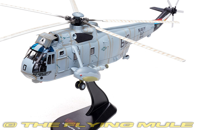 The SH-3H Sea King served with Helicopter Anti Submarine Squadron 8, HS-8, aboard USS Carl Vinson during the early years of the carrier's operational service in the 1980s. As part of the carrier air wing, HS-8 flew anti submarine warfare patrols, plane guard missions, search and rescue, and surface surveillance. The SH-3H featured improved sonar, radar, and acoustic processing systems that enhanced submarine detection capability. Operating from USS Carl Vinson, HS-8 crews worked closely with escort ships to protect the carrier battle group, providing a vital ASW and safety role during Cold War era deployments. Designed to meet a US Navy requirement for an all-weather amphibious helicopter, the Sikorsky SH-3 Sea King first flew on March 11, 1959. Originally a submarine hunter-killer, the Sea King has since been used in a variety of operations, from search and rescue, executive transport and communications to anti-ship and airborne early warning. Its five main rotor blades and tail section fold for stowage aboard aircraft carriers, and its hull can remain temporarily watertight for water landings-a risky maneuver attempted only in emergencies. When deployed by aircraft carriers, Sea Kings serve as plane guard and are the first in the air and the last to return. © Copyright 2003-2026 The Flying Mule, Inc. The Legion Models 1:72 Aircraft range presents detailed, ready-made diecast models of military aicraft in 1:72 scale. Legion Models diecast airplanes feature: - Diecast metal construction with some plastic components.