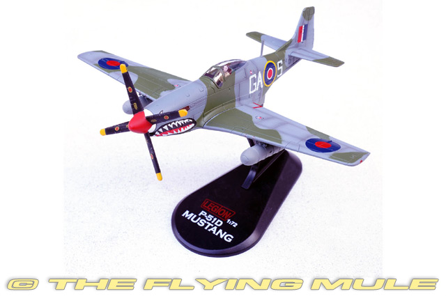 Ellis Blanchford was a Royal Air Force fighter pilot who flew the Mustang Mk.IV with No. 112 Squadron RAF during the final stages of World War Two. Operating in the Mediterranean theater, 112 Squadron used the Mustang Mk.IV for long range escort, ground attack, and armed reconnaissance missions. The aircraft provided excellent speed, range, and reliability, allowing RAF pilots to strike targets deep behind enemy lines. Blanchford flew combat sorties supporting Allied advances in Italy and the Balkans. The shark mouth marked Mustangs of 112 Squadron became well known, and Blanchford's service contributed to the unit's strong wartime combat record. Designed to meet an RAF requirement for fighter-bomber and reconnaissance aircraft, the P-51 Mustang was first flown on October 26th, 1940. This versatile aircraft was capable of escorting bombers on long-range missions, engaging in dogfights, and dropping down to destroy German targets on the ground. At least eight versions of the P-51 were produced, but it was the definitive P-51D that gave the Mustang its classic warbird appearance. Britain and the US both tested the airframe with the Rolls-Royce Merlin engine, which gave the aircraft tremendous performance gains. The Truman Senate War Investigating Committee called the Mustang "the most aerodynamically perfect pursuit plane in existence." © Copyright 2003-2026 The Flying Mule, Inc. The Legion Models 1:72 Aircraft range presents detailed, ready-made diecast models of military aicraft in 1:72 scale. Legion Models diecast airplanes feature: - Diecast metal construction with some plastic components.