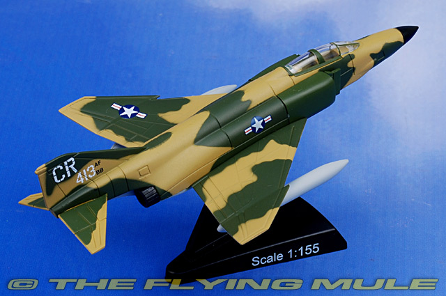 At first the F-4 was ordered as a flat air defense fighter for the US Navy. Its job was to kill beyond visual range. But, its versatility was such that it became a workhorse for the USAF and other forces. The F-4 is fast at mach 2.2 and could carry large loads of weapons. This 2 man fighter was more powerful than MIG 17's, 19's and 21's and gave great service with the Israeli AF agianst Egypt and Syria. Designed as a fleet defense fighter for the US Navy, the F-4 Phantom was first flown on May 27, 1958. This twin-engine, long-range all-weather fighter/bomber proved highly adaptable and served in the Marine Corps and the US Air Force as well as in the Navy. During the Vietnam War, it was the principal air superiority fighter for the Navy and the Air Force and was also used for reconnaissance and ground attack. The Phantom continued to serve well into the 1970s and 1980s and even flew missions during the first Gulf War. Finally phased out by the F-14, F-16 and F/A-18, the Phantom was retired in 1996. © Copyright 2003-2026 The Flying Mule, Inc. The "Postage Stamp Planes" range presents affordable, ready-made diecast models of military and civilian aircraft. "Postage Stamp Planes" diecast airplanes feature: - Diecast metal construction with some plastic components.