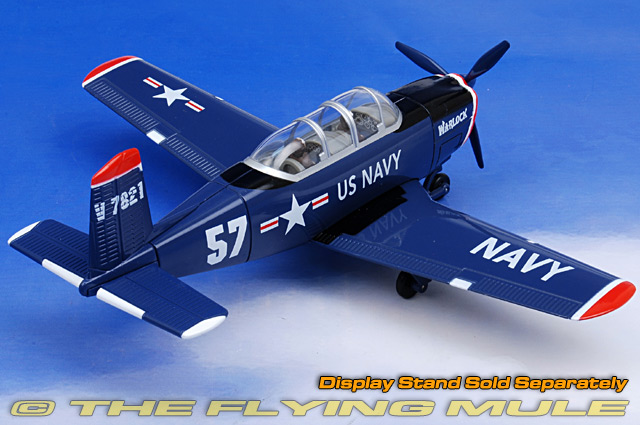 Model Power's 1:48 scale T-34 Mentors are constructed almost entirely of diecast metal. The near-solid diecast metal fuselage features a massive crystal clear canopy that provides an unobstructed view of both pilot figures and both instrument panels. The solid metal wing has simulated landing lights on the leading edges of both wings and corrugated control surfaces. The robust all-metal landing gear is fixed, allowing the model to be displayed right out of the box.