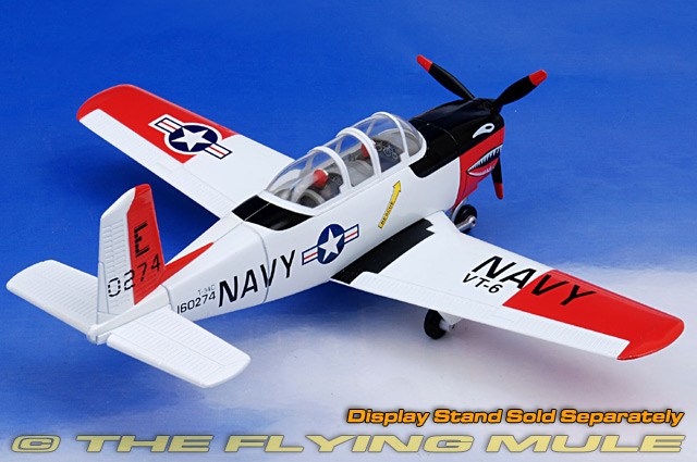 Model Power's 1:48 scale T-34 Mentors are constructed almost entirely of diecast metal. The near-solid diecast metal fuselage features a massive crystal clear canopy that provides an unobstructed view of both pilot figures and both instrument panels. The solid metal wing has simulated landing lights on the leading edges of both wings and corrugated control surfaces. The robust all-metal landing gear is fixed, allowing the model to be displayed right out of the box.
