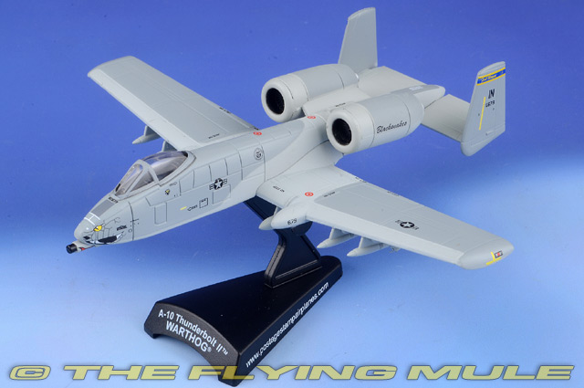 The 163rd Fighter Squadron is a unit of the Indiana Air National Guard 122nd Fighter Wing located at Fort Wayne Air National Guard Station, Indiana. The 163rd is equipped with the A-10 Thunderbolt II. The A-10 is a single-seat, twin turbofan engine, straight wing jet aircraft developed by Fairchild-Republic for the United States Air Force (USAF). Commonly referred to by the nicknames "Warthog" or "Hog", its official name comes from the Republic P-47 Thunderbolt, a World War II fighter-bomber effective at attacking ground targets. The A-10 was designed for close air support (CAS) of friendly ground troops, attacking armored vehicles and tanks, and providing quick-action support against enemy ground forces. It entered service in 1976 and is the only production-built aircraft that has served in the USAF that was designed solely for CAS. Its secondary mission is to provide forward air controller - airborne (FAC-A) support, by directing other aircraft in attacks on ground targets. Aircraft used primarily in this role are designated OA-10. Designed to counter criticism that the US Air Force wasn't serious enough about close air support, the A-10 Thunderbolt II was first flown on May 10, 1972. The Thunderbolt II is a single-seat attack aircraft used to protect ground forces from tanks, armored vehicles and other ground targets. Nicknamed "Warthog," the A-10 is highly maneuverable at low speeds and low altitude and is capable of short take-offs and landings. It is designed for easy maintenance-many of its parts are interchangeable between the right and left side and it can operate from bases with limited facilities. The A-10 is expected to remain in service until 2028 or beyond. © Copyright 2003-2025 The Flying Mule, Inc. The "Postage Stamp Planes" range presents affordable, ready-made diecast models of military and civilian aircraft. "Postage Stamp Planes" diecast airplanes feature: - Diecast metal construction with some plastic components.