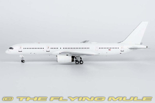 | Boeing C-32B | | 9.25" | | 7.5" | Designed as a narrow-bodied, twin-engined airliner to replace the 727, the 757 was first flown on February 19th, 1982. Developed in tandem with the wide-bodied 767 twinjet, both aircraft share a common digital cockpit layout and are operated by a two man flight crew. Thanks to a proven reliability track-record, the 757 is approved for extended twin engine operations (ETOPS) making it a popular choice for airlines flying transatlantic routes. A total of 1050 aircraft were built before production ceased in 2004, however many airframes have since been retrofitted with drag-reducing blended winglets to help improve fuel economy. © Copyright 2003-2025 The Flying Mule, Inc. The NG "1:200" range presents higly-detailed, ready-made diecast models of civilian aircraft in 1:200 scale. NG 1:200 diecast airplanes feature: - Diecast metal construction, including wings and tail surfaces.