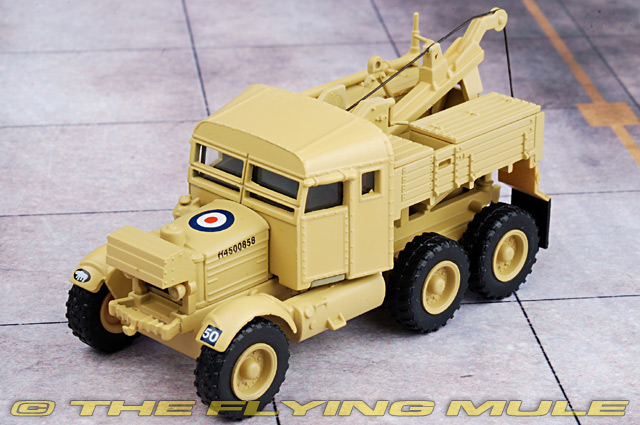 This Pioneer saw extensive service during WWII, especially as a recovery vehicle and this latest release shows it in a sand yellow suitable for operations in the deserts of the Middle East. The military markings add some colour to the vehicle, particularly the RAF Roundel which features on the bonnet and the Division's crest - the rhino in white out of a black ground, which is printed on the front and rear mudguard. The vehicle identity number H4500858 is printed in black on each side of the bonnet and also on the rear of the truck to the right of the tow hook.