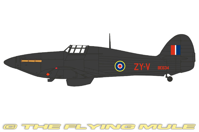 Based on the Fury biplane and designed by Sydney Camm as a monoplane fighter, the Hurricane was first flown on November 6th, 1935. With its wide-set landing gear, easy handling, reliability, and stable gun platform, the Hurricane was suitable for a variety of different roles such as intruder, ground strafing and night fighter. Steel-tube construction meant cannon shells could pass right through the wood and fabric covering without exploding. The Hurricane underwent many modifications during its lifetime, including an upgraded Merlin engine and interchangeable multi-purpose wings, staging twelve 7.7mm guns and two 40mm anti-tank guns and carrying two 500lb bombs. © Copyright 2003-2026 The Flying Mule, Inc. The Oxford Diecast "Oxford Aviation" range presents affordable, ready made diecast models of military aircraft. Oxford Diecast "Oxford Aviation" diecast airplanes feature: - Diecast metal and plastic construction.