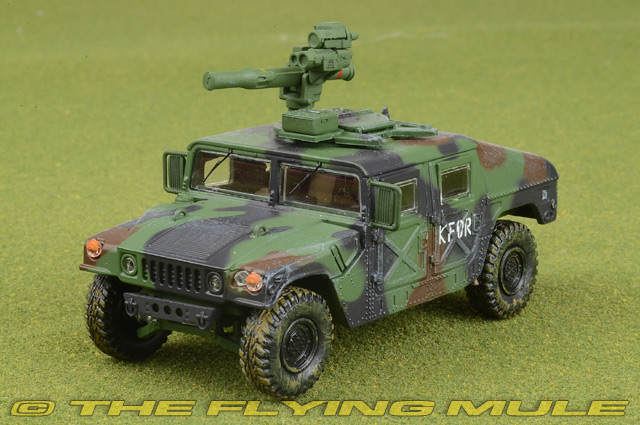 The M1046 HMMWVs were TOW Missile Carrier configurations of the HMMWV family. The vehicles were equipped with supplemental armor and a TOW launcher mounted on the roof of the vehicle. The vehicles were used to transport and launch TOW missiles to defeat armored vehicles. In 1981 the US government awarded AM General the contract for 55,000 HMMWVs. This High Mobility Multipurpose Wheeled Vehicle (HMMWV or Humvee) has assumed the military role previously filled by Jeep and is produced in several configurations: command and control systems, field ambulance, ammunition and troop and general cargo transport. Optional equipment includes a winch and supplemental armor. Variant armament carriers provide mounting and firing capabilities for heavy machine guns. The Humvee is equipped with a high performance diesel engine, automatic transmission and four wheel drive and is air transportable and droppable from a variety of aircraft. © Copyright 2003-2025 The Flying Mule, Inc. The Panzerkampf range presents affordable, ready made diecast models of military vehicles. Panzerkampf diecast vehicles feature: - Diecast metal and plastic construction.