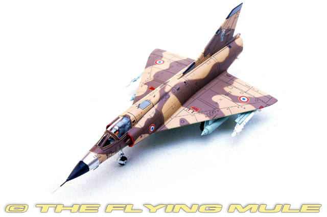 Djibouti Air Base is the central hub of French strategy in the North African region. France has remained active there since the 1930s because it offers an excellent observational outlook over the whole region, as well as being a useful link to overseas territories such as the island of La Reunion (in the south Indian Ocean), New Caledonia and French Polynesia. The first major production model of the Mirage III was the Mirage IIIC, that first flew in October 1960. A total of 95 Mirage IIICs were obtained by the French Air Force (Armee de l'Air), with initial operational deliveries in July 1961. The Mirage IIIC remained in service until 1988. Designed to meet a French government specification for a lightweight, all-weather interceptor, the Dassault Mirage III was first flown on November 17, 1956. This supersonic aircraft has a tailless delta wing configuration and is capable of high speeds (a Mirage IIIA was the first European aircraft to exceed Mach 2 in level flight). It has a provision for a SEPR liquid-fuel rocket engine, which provides additional burst thrust. In production for over a decade, the Mirage III is considered one of Europe's most successful military aircraft designs, serving 20 different nations, some of whom still fly it today. © Copyright 2003-2025 The Flying Mule, Inc. The Panzerkampf range presents affordable, ready made diecast models of military aircraft. Panzerkampf diecast airplanes feature: - Diecast metal construction with some plastic components.