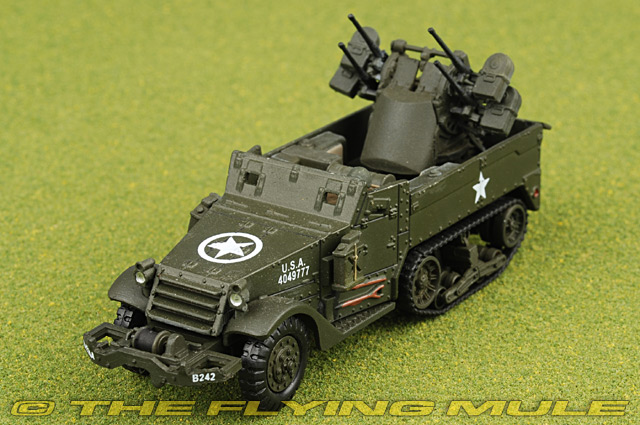Over 53,000 M3 vehicles were produced during WWII. The M3A1 featured a 147 horsepower 6-cylinder gasoline engine that could reach speeds of 45MPH. Configured in many different formats the M3A1 was primarily used for troop transport and as an armored car. It contained an array of small arms and a .50 caliber Browning M2-HB.