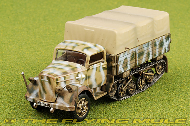 | Opel Sd.Kfz.3 Maultier | | 3.25" | | 1.25" | Designed as a half-track conversion of the popular Opel Blitz truck, the Maultier (Mule) entered production in 1942. The advancing German army quickly realized that 4-wheel drive vehicles were no match for the wet and muddy conditions encountered on the Eastern Front in wintertime. Consequently, Opel Blitz trucks were hastily converted to half-track configuration using left over Panzer I track assemblies. In some cases, the conversion was even carried out in the field. The resulting vehicle was neither fast nor maneuverable but it served its purpose and kept supply chains moving in less than ideal conditions. © Copyright 2003-2025 The Flying Mule, Inc. The War Master "Military Machines" range presents affordable, ready made diecast models of military vehicles. War Master "Military Machines" diecast vehicles feature: - Diecast metal and plastic construction.