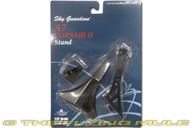 Positional metal display stand designed for Witty A-7 models. Designed as a longer-range, higher-payload replacement for the A-4 Skyhawk, the A-7 Corsair II was first flown on September 27th, 1965. This aircraft entered service during the Vietnam war and later became one of only a few US Navy aircraft to serve with the US Air Force. It possessed cutting edge technologies; it was one of the first aircraft to use a turbofan engine, an internal navigation system and a "head-up" display. Late in its career, A-7s were used for pilot training and were parked outside of hangars in order to draw the attention of Soviet spy satellites away from the fledgling F-117. © Copyright 2003-2025 The Flying Mule, Inc. The Witty "Wings" range presents detailed, ready-made diecast models of military aircraft. Witty have earned a reputation for producing high-quality models that can be displayed right out of the box. Witty "Wings" (Series 2) diecast airplanes feature: - Diecast metal construction with some plastic components.