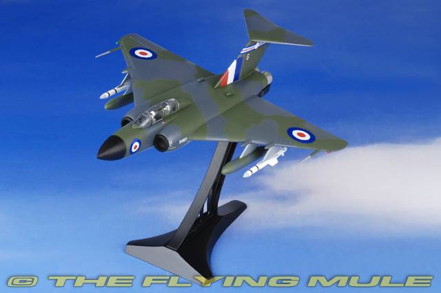 Witty's 1:72 scale Javelin model features a solid metal wing that has been cast with the nose and upper fuselage as a single unit. Replication of the "drooped" wing leading edge and wing-tip vortex generators can be seen on this model's broad delta wing. Upon close inspection, distinct-yet-subtle panel-line and rivet details are visible throughout, an uncommon feature in diecast metal (usually only seen on plastic models). The model and be easily configured for ground display, or mounted to its positionable all-metal display stand. Additional features include removable canopy, ordnance and fuel tanks.