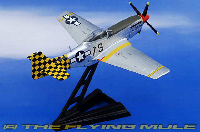 Witty's 1:72 scale P-51 is a beautiful addition to any WWII fighter aircraft collection. The fuselage is constructed almost entirely of diecast metal, and the solid metal wing has subtle panel line details. Fine details also include a correctly-rendered diecast metal exhaust stack, structural detail of the wing that can be seen inside the wheel wells and exceptionally crisp pad-printed placards and unit markings. Included in this series are variants with a variety of wing-mount drop tanks and accurately modeled radiator scoops. Each release also has a display stand bearing details such as the aircraft's name, operator or type.